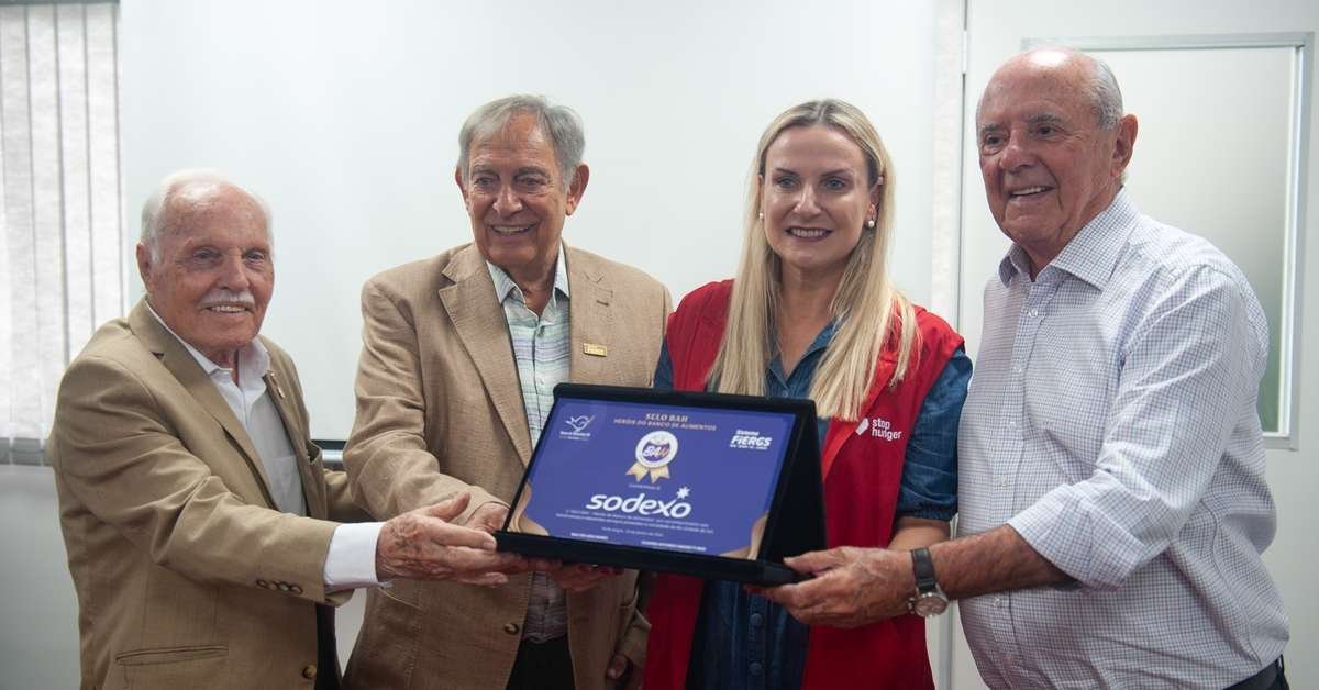 A Sodexo, uma empresa multinacional francesa que oferece serviços de alimentação e gestão de instalações, recebeu um importante reconhecimento por seu impacto social no Rio Grande do Sul. Nesta terça-feira, a companhia foi agraciada com o Selo BAH – Heróis do Banco de Alimentos. A entrega do selo ocorreu durante uma cerimônia na sede do Banco de Alimentos em Porto Alegre, onde Claudio Bier, presidente do Conselho de Administração do Banco de Alimentos e da Fiergs, fez a entrega à CEO da Sodexo, Andrea Krewer.